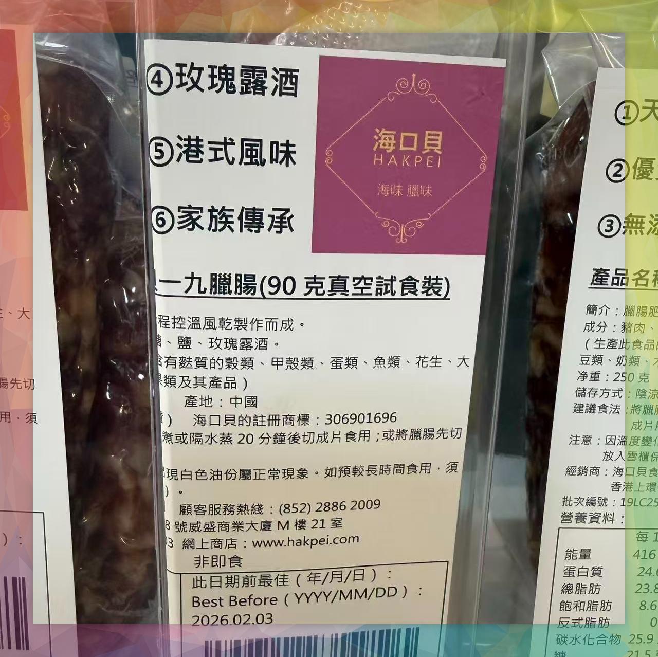 香港海口貝牌一九臘腸(90克真空試食裝)