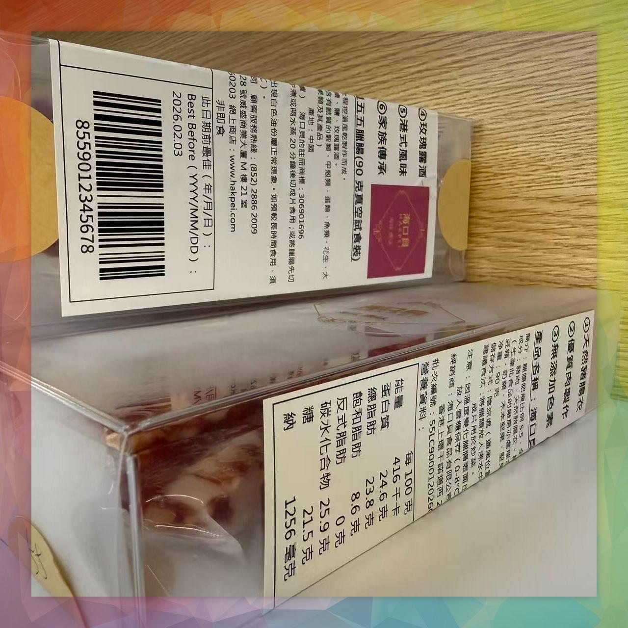 注意:因溫度變化臘腸表面出現白色油份屬正常現象。如預較長時間食用,須放入雪櫃保存(0-8°C)。