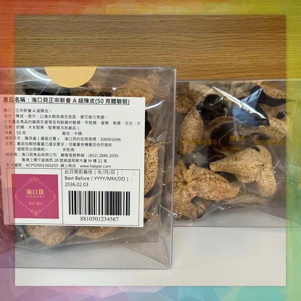 產品名稱:海口貝正宗新會A級陳皮(50克體驗裝)